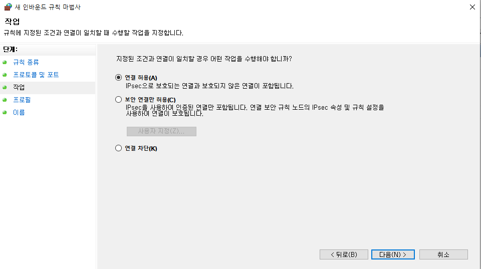 연결 허용(기본값)을 선택 후 다음.