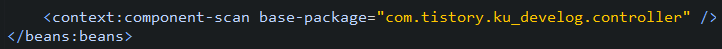 servlet-context.xml에는 컨트롤러와 관련된 패키지를, root-context.xml에는 비지니스 로직과 관련된 패키지를 스캔한다.