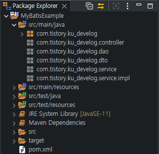 id가 DAO에 작성한 메서드의 이름과 1:1로 매칭된다고 했으니 중복이 있어서는 안되며 DAO에는 없는 메서드 이름을 id로 사용하면 안된다. 네임 스페이스에 사용한 패키지 경로와 메서드 이름을 결합하면 "com.tistory.ku_develog.dao.MemberDAO.getMember()"와 같이 되기 때문이다.
