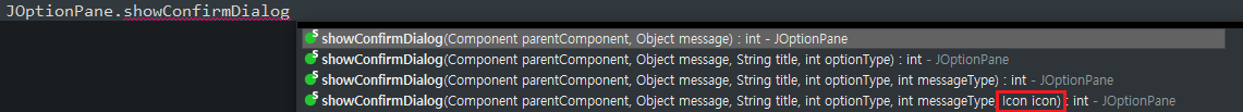 JOptionPane.showConfirmDialog(null, "다시 실행하시겠습니까?", "확인", JOptionPane.YES_NO_OPTION, JOptionPane.PLAIN_MESSAGE, icon);