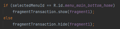 replaceFragment에서 볼 코드는 show/hide 메서드를 호출하는 부분이다. 컨테이너에 모든 프래그먼트가 추가된 상태에서 특정 프래그먼트만을 보여주기 위해 나머지 모든 프래그먼트를 hide 상태로 만든다.