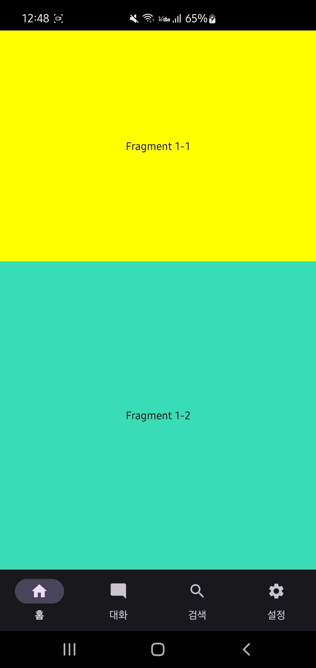 안드로이드 어플리케이션에서 하단에 네비게이션을 두고 화면을 이동할 수 있는 BottomNavigationView를 구현하는 방법에 대한 기록 포스팅이다. 스크롤의 유지 여부를 확인하기 위해서 각 프래그먼트에는 컬러 TextView가 배치되어 있다.