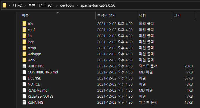 다운받은 파일의 압축을 푼다. 다운로드 폴더나 바탕화면 같이 아무 곳에나 저장하기 보다는 C드라이브에 전용 폴더를 만들고 모아 놓는 것이 관리하기 좋다. 필자는 C 드라이브에 devTools 폴더를 생성해 압축을 풀었다.
