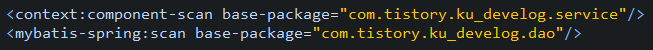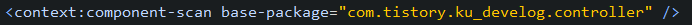servlet-context.xml에는 컨트롤러와 관련된 패키지를, root-context.xml에는 비지니스 로직과 관련된 패키지를 스캔한다.